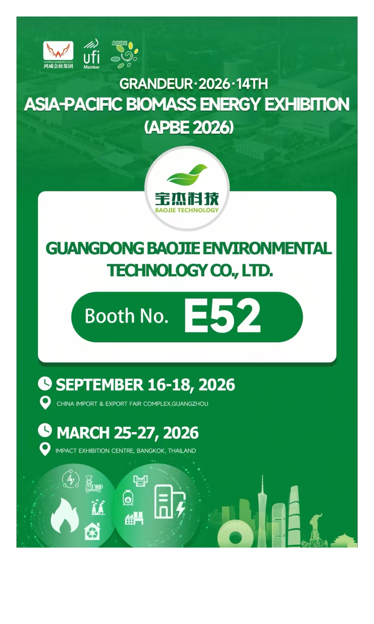 Азиатско-Тихоокеанская выставка энергетики биомассы 2026 года торжественно откроется в Бангкоке, Таиланд! Мы искренне приглашаем всех новых и существующих друзей посетить стенд Baojie Environmental для получения рекомендаций и обсуждений.